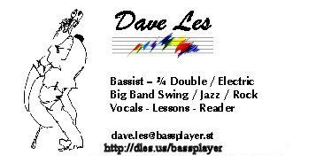 I am currently playing with: The Nightlights Jazz Combo - usually - a 4 piece combo The North Oakland Concert Band - an awesome community band of about 85 great, dedicated folks. This really exercises my arco - so it helps for the CTR choir work as well. The Paint Creek Boys - Country, Bluegrass and Gospel done "down home style" with guitar, banjo, fiddle, mandolin, and bass. |